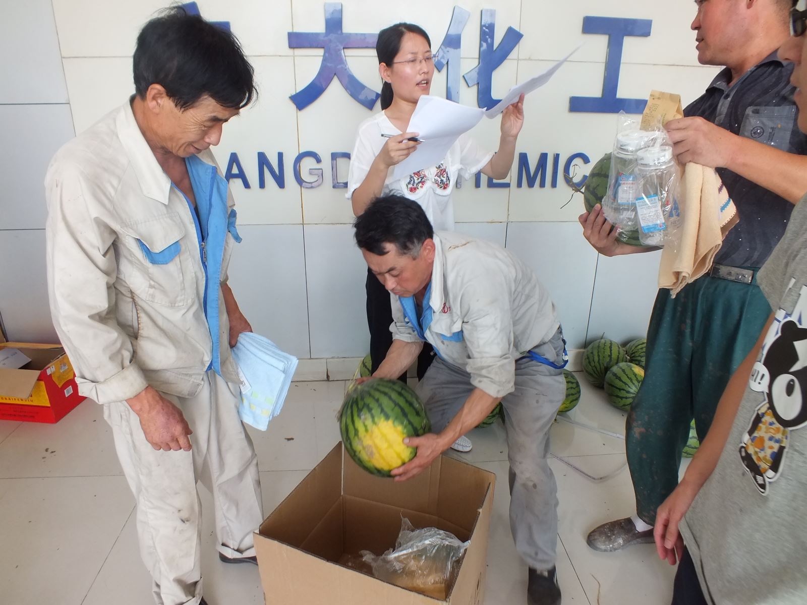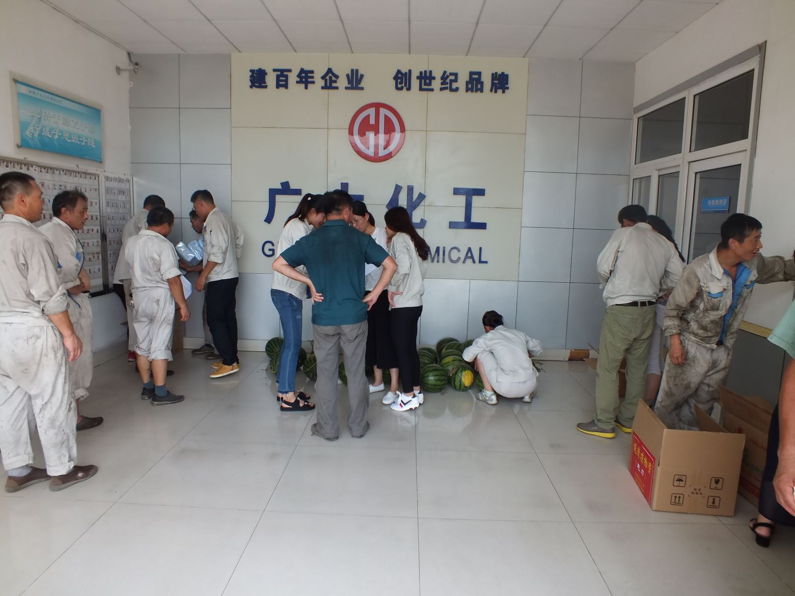 經(jīng)過一上午的準(zhǔn)備,所有的西瓜在整齊擺放,讓員工們第一時(shí)間吃上清涼可口的西瓜,緩解炎熱高溫帶來的疲憊。