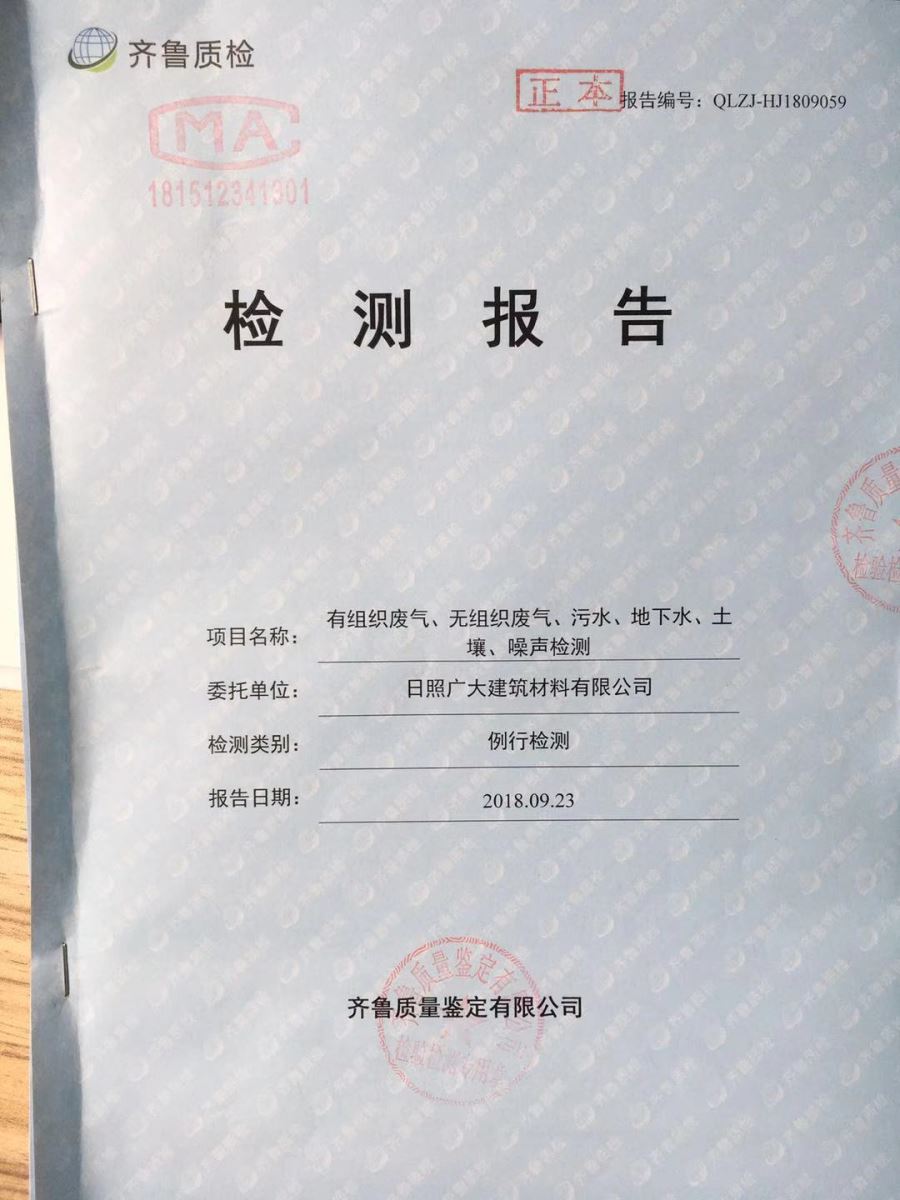 日照廣大建筑材料有限公司第三季度檢測報告